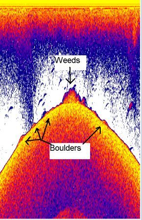 Bump #3 is an example of boulders that appears as solitary bumps on sonar and look like logs or fish tight to bottom. I am showing these to demonstrate that a lot of the previous answers to Mystery #2 could have been correct.