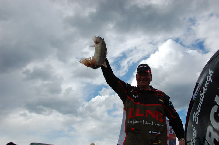 Location: Stevens Point, WI | Day 2, enroute to the final cut of 25, the Lund/Mercury Championship dawned with clouds in the sky but by take-off time, the clouds passed and opened day 2 with clear skies and sun. Ranger/Evinrude pro Mark Courts heads into today with just over a four pound lead over Mark Christianson of Cass Lake, MN.