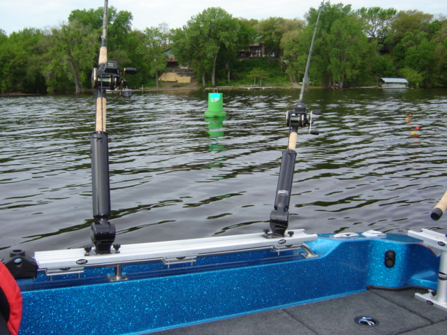 | I said I would post a pic of my buddy's rod holder set up in his 177. Please ignre the fact that the rod holders are Scotty's, and consider Folbe's, especially if you do any muskie trolling.