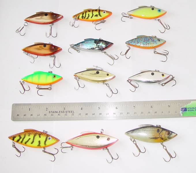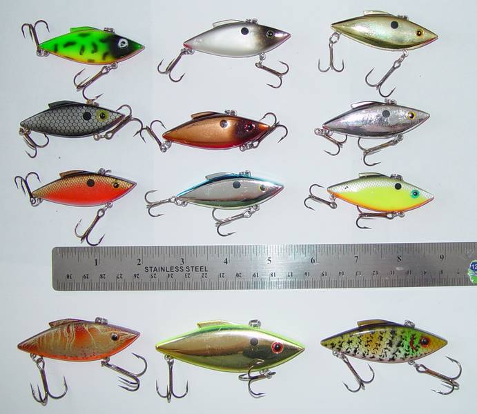 I have the following Rattle Traps, Rattlin Raps and Manns Minus 1's for sale. I have 3 lots of traps for sale - there are 12 traps per group, 9 ea 1/4 oz and 3 ea either 1/2 oz or 1 oz - assortede colors. These are used - one or two may have seen the water a few times - the rest are either used once or new out of box. $35 each group shipped.