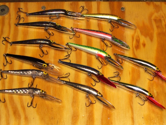 Location: Oshkosh, Wisconsin | 11 storm dj's for sale. Most have not seen the water. 3 blue herring bone silver, 3 black silver prism, 1 black silver, 1 rainbow trout, 1 orange black dots, 1 green black dots, 1 blue/silver with red bill. Also have 2 nitro shiners in this lot. 1 has a green back with silver/red bill, the other has blue back/silver red bill.