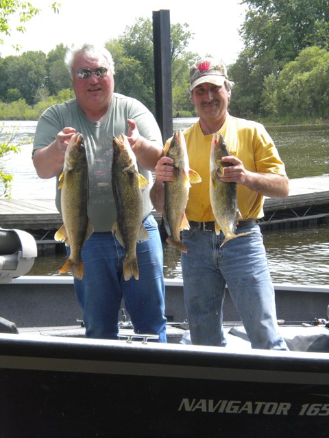 | Team Tom Brye and Tom Beck WIN with an impressive 21.21 pounds in a limit of four Mississippi River Pool 8 walleyes netting them $900.00 in winnings. The duo fished willowcats tipped bait rigs in off channel sloughs to dominate the rest of the field by over ten pounds! Second place team Tom Oldenburg and Todd Slaght brought in 11.19# winning them $670.00. Thirds place Mike Young and Tim Hass rounded out third with 9.72#'s of tight lipped Mississippi walleyes netting them $250. Team Jason Thompson and Steve Skau won big fish honors with an impressive 6.55# eye netting them $520.00. Teams were blessed with a beautiful day on Pools 7 and 8 in this third event of four for the 2010 MMWS Season.
