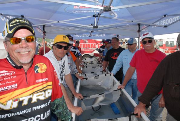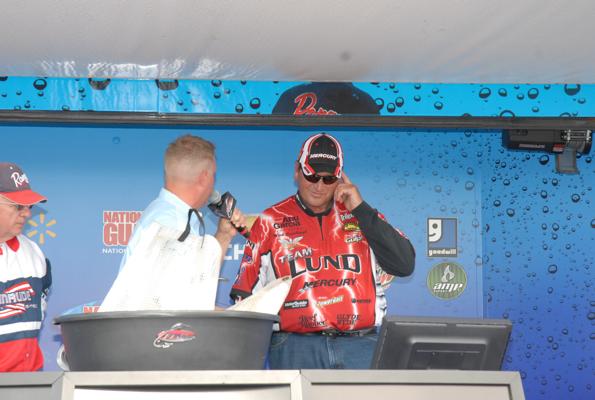 As we heard yesterday, even though the day-one leaders were well defined, this lake is known for being 'on' one day and 'off' the next so today's top spot was wide open. Forty pound bags are definitely not impossible, but they are a surprise the spectators like to see. Tom Keenan did not disappoint by bringing in a tremendous bag weighing just over 46 lbs.