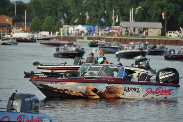 Despite all the heat, the Pros felt the bite would hold from yesterday, even to the point where second place Gil Mollett and his team members (including 10th place Lynn Jurrens), are going directly back to the same fish and repeating exactly yesterday's program. Third Place Lund/Mercury Pro Marianne Huskey also said her fish should be where they were, it's a 'simple' matter of being on the right pod when they turn on.