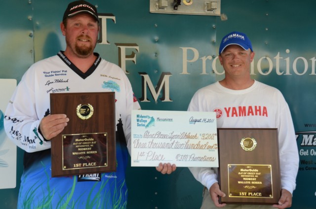 Location: Stevens Point, WI | Robert Blosser and Lynn Niklasch boated a three fish limit weighing 26.92 pounds and winning the last MWS regular season event of 2011. Pulling crawler harnesses throughout the day, Blosser/Niklasch boated a 10.28 pound walleye, tying them with Michael Gengalo Jr. and Michael Gengalo Sr. for Sunday's Largest Fish Award and netting each team $485.