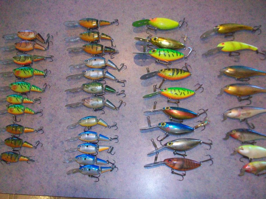 22 jointed shad raps, # 4 and 5's, 6 3/8 oz. hot and tots, 2 walleye divers, 6 shallow shad raps. Comes with plano box. $90 to your door.