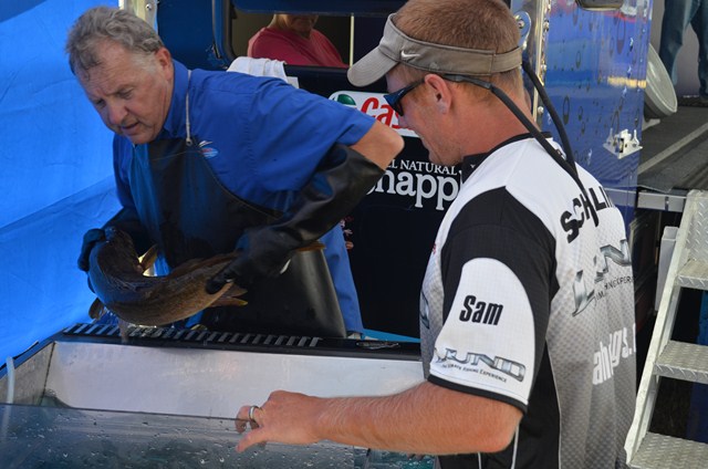 Not much was said onstage about techniques and presentations, but the South Shore was mentioned enough to indicate that was the hot area for many Pros. The wind was perfect there today, and forecasts have a wind switch tomorrow which could cool the bite there and heat it up elsewhere.