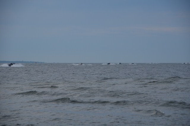 The weather is cooperating nicely with offshore winds. There's enough for a good chop which is necessary here, but not enough to cause issues. This water can be mean.