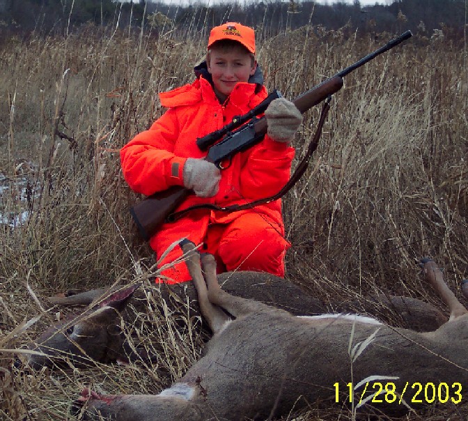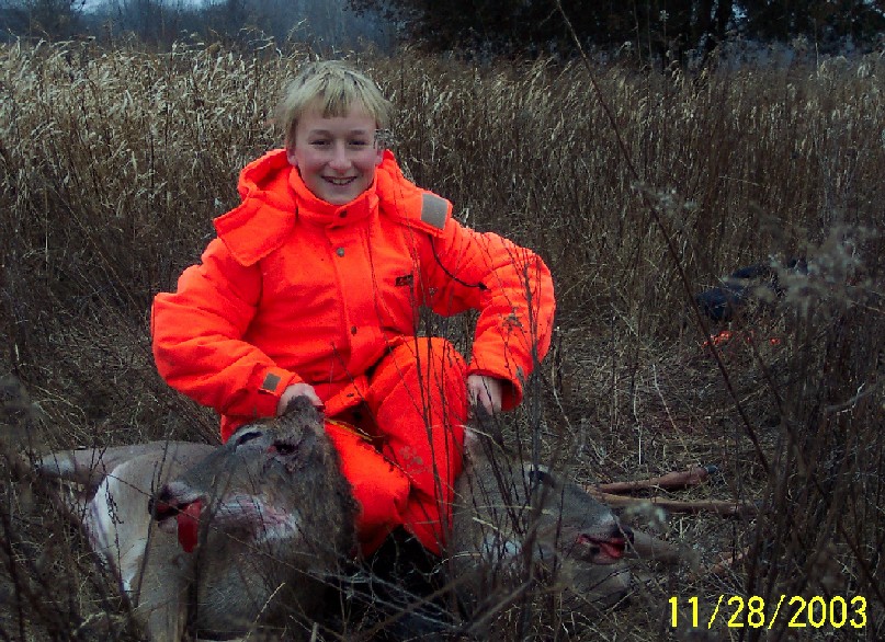 Here's a couple pics of Eric and his first 2 deer.