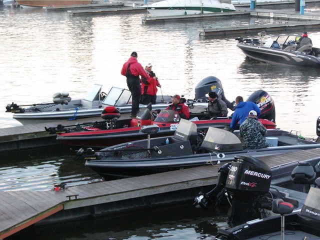 The top two places are for all intents tied, and anyone in the top 6 or so has a shot at the win IF the bite holds. Clearing skies and calm conditions might make the bite a bit tougher. Word is, the trolling bite is off, so casting and jigging are the techniques most are using. We saw plenty of jigs and cranks on the rods this morning.