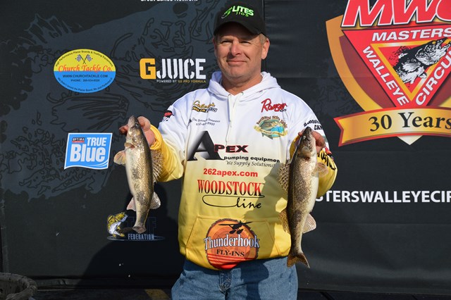 Scott Rhodes and Jeff Koester lead the Spring Valley MWC with 14-06 weighing in a mixed bag of saugers and walleyes. Second place is held by Barry O'Flynn and Corey Blair basketing 12-09.