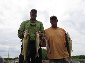 | MMWS Team Troy Patterson and Tony Hentges overcome the HIGH water and WIN the MMWS Mystery Pool event on Pool #7 in Trempealeau on 6-7-14 with a four fish limit of 10.46#'s! The do pitched jigs and cast crankbaits in the lower expanses of the pool to net their winning limit. They also took Big Walleye Honors along with the win- netting them $515.00 total. Team Zimmerman / Petchow took second netting them $225.