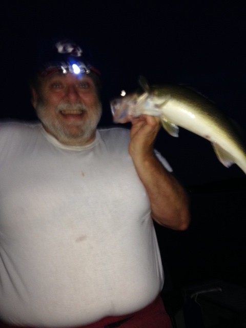Brian started out like a pro, but when he swung one 23 incher in like a perch, I wondered about his understanding of small ones. But the lesson was learned after he banged a good fish into the back of the motor and it fell back in. We then moved to do some isolated, single rod pump trolling. That's where I shined and caught a couple myself. All in all we went 9 for 10. Launched at 9:00pm and back home by 12:30am. I took a lot more pictures even a couple of all the fish in the cooler. But dumb azz me, had the flash on my cell phone turned off. You can see the sprung/released inside planer board of the second walleye dragging in the water in the picture below. It struck as I was taking a picture of Brians first.