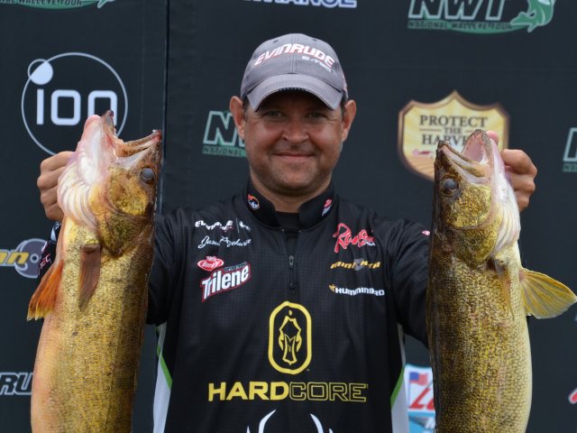 Location: Rhinelander | Keith Kavajecz smoked 'em using a technique that is 'neither spinners or cranks' taking over first place with 27.80, about as nice a limit as one can ask for with the slot limit on the Bays. Over all the bite was very good, eclipsing the dire predictions. Most of the pros said it was because of the near perfect weather for the bite, even though they beat up gear and body running 6' seas.