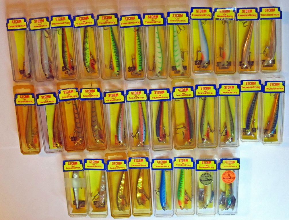 Location: United States | Charter Captains Lot of 32 Old Storm Pre Rapala Junior Thundersticks in numerous colors. Please note that some side tabes are worn and 1 [Shown with tape] is in wrong box New-Other