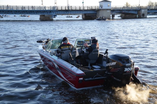 The bridge had a few anglers this morning, and the boats by the bridge were packed in, creating an obstacle course for some of the teams heading through to the lakes.