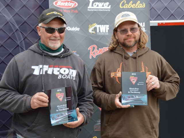 Joe Perez and Troy Tregoning took the win on the Illinois River! The team brought in two fish weighing 6.11 pounds that gave them a two day total weight of 19.12 lbs. Curtis Oliver and Doug Galant jumped up to second place with a two day total weight of 17.11 lbs and Day one leaders Steve Vandemark and Jerry Fox JR fell to third place with 16lbs. Top 20