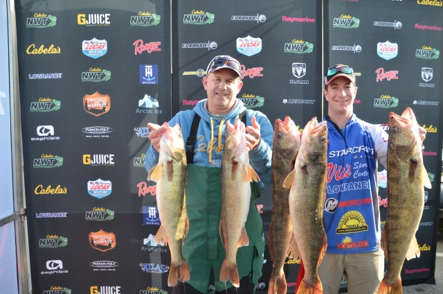 Pro Angler Zak Jobes and Co Angler Craig Jameson lead after day one with a 5 fish bag of 39.53 pounds. Ryan Buddie and Dennis Leuer are close behind in second with a 5 fish bag weighing 39.33 pounds. Your Third place pro and co angler spot for day one is Mike Robertson and Daniel Smith with 5 fish weighing 37.53 pounds. The bite today proved to be a tough one for a lot of anglers but some of the teams were lucky enough to bring in a good weight. Pro Angler Zak Jobes and Co Angler Craig Jameson are in the lead after day one of the 2017 Cabela's National Walleye Tour Event On Lake Erie with a 5 fish bag of 39.53 pounds. See the weigh in Video!