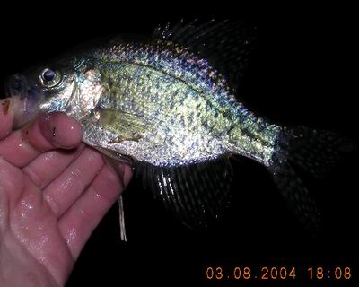 The funny part is no matter how aggressive these rascals usually are - today I did not feel or see a bite. They were just hanging on to the minnow and not giving out their presence - I would twitch the line to make it more attractive and feel the weight already there... The only bites I did see were this baby Crappie: