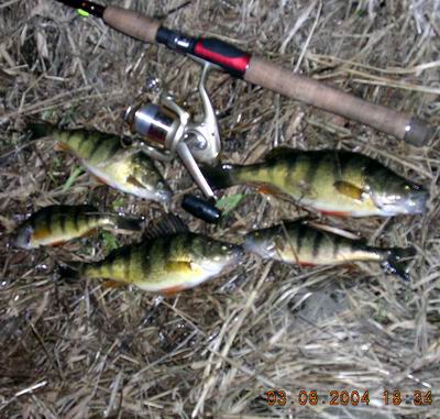 and an 8" Perch - both dipped the whole antenna and I let both of them go. All in all kept 5 fish 9.5-11" for a dietary meal - hope to find them better next time.