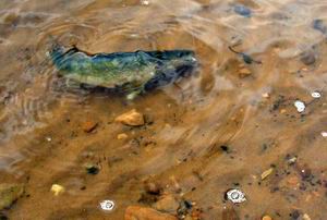 All the bottom was producing were snags – of the great kind that leaves behind a macrame of line to get a bunch of greedy tentacles floating around and lurking greedily for your next cast… Reverse current was stronger than my liking and I did not want to switch to heavier jigs so I desided to keep my bait in the current pockets with a bobber. Well Walleyes were suspended, I guess the overcast skies and the rain-any-moment-now barometer were bringing them 2ft under the surface, that and the numerous river shiners I count as factors enough to drive them off the bottom. All I did was keep switching – only colors at first but then the lures as well, and then start a thoroughly different approach. The smallest spinners got me bites. Still, fish weren’t particular in their liking because after the second White Bass I landed on a spinner it was only tiny plastics to produce and I had to cast all the way to the current break and try to keep my presentation within feet and recast. Almost every other lure I presented was bit off by the snags ? LOL. My lady called me and I made only another 50 one-last-casts to pack and go – did not want any aggrevation at home.