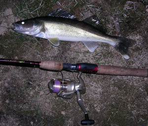 Starting off slow last night proved awarding for my patience. Of the dozen or so Walleyes I caught 4 were keepers and I took 3 home for dinner. Interesting enough I could not still figure a steady tactic... Stopped by the boat area under Mexicali Rose on my way home to try a few more casts and saw Bluegills and Carp were spawning and a huge Beaver did not like me being around so he kept splashing with his paddletail ferrociously on the surface. I hooked into something of really respectable size, that took my Husky Jerk about 10ft away from shore and no more than 30ft away from me while I was running a really slow retrieve with no sudden twitches. Spooled me twice(I need to put some new line as there is almost nothing left after all the break-offs so it was easy for the fish to run 25-30 yds at a time) and spit it out Well I hope I catch him next time. "Invented" a new recipe last night! LOL. Grilled my Walleye with seasoned salt and lemon juice and cooked some rice with chopped green onions and peppers simmered with butter and of course garlic and soy sauce! WOW that stuff served with plain yogurt was just finger-licking good! ;)