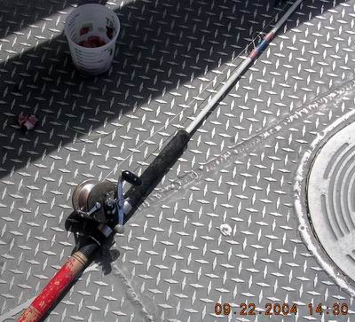 We tied our hand-down poles to the railings while on the move, put the chunk squid under the benches and off to deep-sea fishing. If one thinks that sophisticated military location equipment directs fishing tour boats they will get disappointed to see a good ole buoy waiting in the favoured fishing spot...