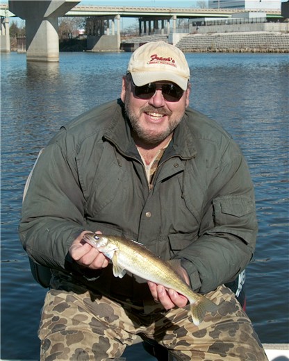 Location: Essexville, MI./Saginaw Bay. | What a beautiful day it was today, while being on the Saginaw River with a good friend. Pictured below is me and just one of the 30 walleyes me and Bob (Chamook Man) caught on the Saginaw River today. Great, huh? Ya....except this was the only one we boated that was larger than 15 inches. 15 1/4 to be exact. I lost two others that would have been keepers, but that don't count I guess. But indeed, the fishing today was fantastic between the walleyes and the many other biting fish specie we caught.