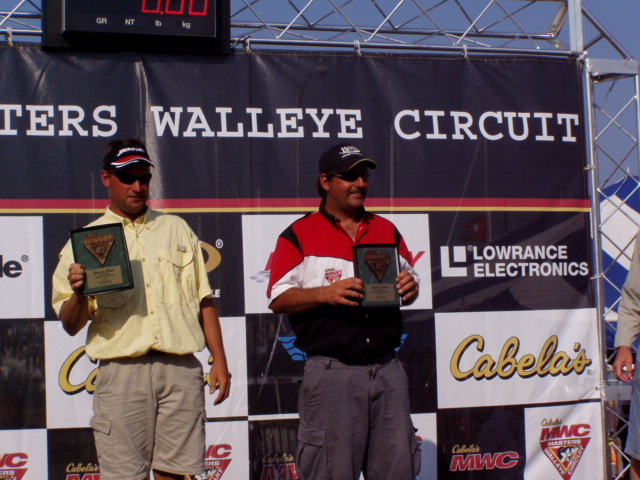 The second place team of Kevin Dahlhauser and David Koller. David is my brother and my Midwest Walleye Series Partner so I will be doing some seriouse rooting at the weigh in this afternoon look forward to seing any WF,s there I will be whereing a shirt with a red white and blue bass on it that says Fishing an American Tradition come on over and say HI.