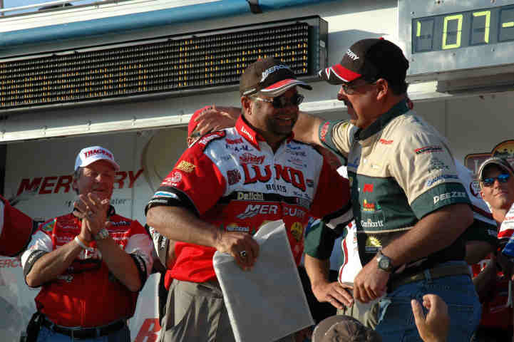 Location: Rhinelander | THIS was a contest. I spoke with Mr. Gofron and Mr. Martin this morning (watch for a WalleyeFIRST Radio interview to be posted today) and the contest between close friends Brumbaugh, Martin, and Gofron was as friendly, yet as intense as one could ask. Mark Martin said, " I have had a great year, If I don't make it for Angler of the Year, it's OK, because either Mark or Mike have the best shot, and they are both close friends." Only about three points made the difference, and it was clear onstage just how much respect the anglers in contention hold for each other.