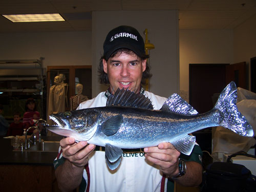 Location: Germantown and Land O Lakes, WI | I gave a GPS seminar at my old Jr College yesterday and got a chance to speak with my Zoology Professor, Wayne Schaeffer. He's been working with the Dept of Ministries in Ontario for decades on various Walleye studies and recently he's come across Blue Walleyes. Notice the second picture, the mucous/slime actually comes off the fish blue.