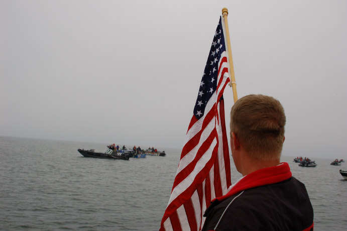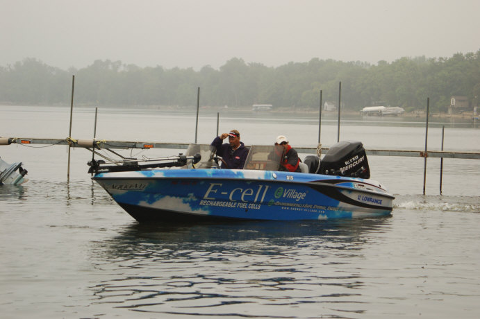 Ron Seelhoff continued a tradition of launching last, and zipped by the launch boat this morning looking pretty intense; as of yesterday he leads two catagories, Angler of the Year and this event. Larry Snow said he took 7 fish in the protected slot between 22" and 28" yesterday, but is confident he's on the right fish. Daryl Christensen said he needs to do well here, as the total competition for the championship is very tight and this one can make it or break it for many. He also seems confident he could score well today.