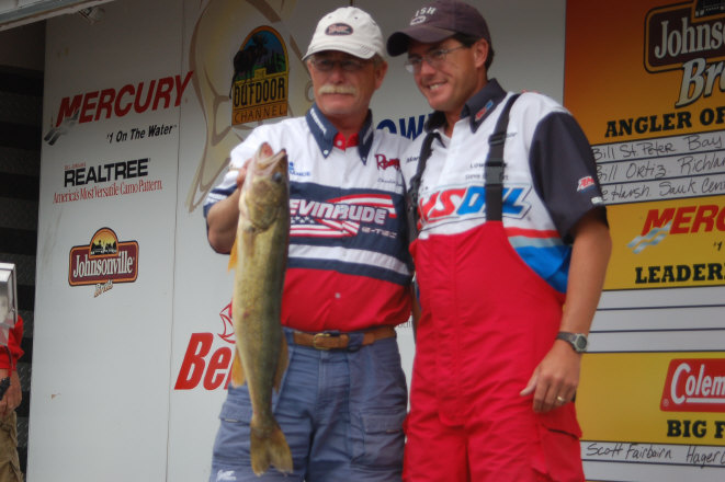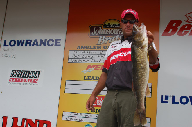| The bite seemed to be a little tougher today as the 'east winds 5 to 10 mph' turned out to be east winds up to 20 mph. Many of the Pros weighed in early, taking the 4 for the scale and coming in. Ron Seelhoff retained his 4# lead, weighing in a 10# plus limit very early in the day.