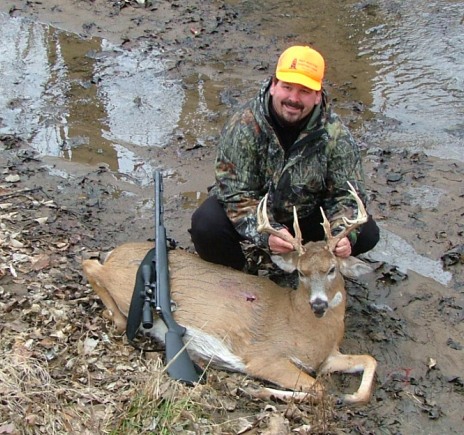 Location: Manitowoc, WI | LOL......actually it is the first deer I've shot with my muzzleloader. I'm looking forward to going back there again......cool place with huge bucks. I dreamed of taking a 170" monster but settled for a 120". |