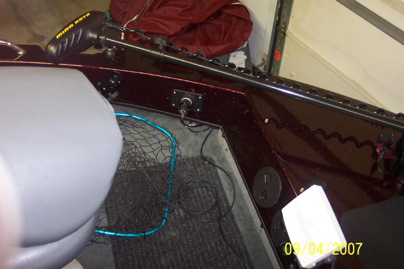 Member Posts: 1991 | Shep nice job. One thing I found on mine, I found that I could move the thrttle ass forward about a 1 or 2" so I did not have to reach back so far. Unbolt it and push the throttle forward so you have enough room to clear the dash, you should not see the holes from before. ALso I ran my chords and cables for the bow mount thru a hole drilled by the motor and put one of those cable covers over the hole and ran my chords out under the cap. Cleans up the bow area. I thought it made it more comfortable. | ||