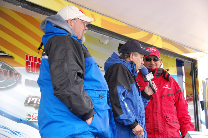Member Posts: 1382 | The windy, rainy, cold weather did indeed effect the fishing today, but according to most of the pros, the bite ws still very good. High wind took some of the Pros out of their A spots, but there were still several 9# lus baskets. Ron Seelhoff didn't catch a kicker fish today, but his 7# weight was enough to allow him to hold on to third at the end of the day. Scott Bank's 10.50 was enough added to his day one weight to take over second. Kelly Klemm did what so many Pros said it was inevitable someone would during this event, and caught a big girl to vault him into first with a 14.56# Day Two basket and a total weight of 21.56#, enough to lead by 3#, tough to overcome if he can stay on his fish tomorrow and Saturday....unless someone else connects with a big fish and scrambles the lead in the process. Here's the score as of Day Two: http://walleye.outdoorsfirst.com/leaderboard/llblisten.asp Tomorrow promises tough weather early, so watch the WalleyeFIRST morning report for details and what the pros are saying about the prospects for the final day before the cut to the Top Ten. Attachments ---------------- DSC_0091.JPG (92KB - 148 downloads) DSC_0097.JPG (64KB - 135 downloads) DSC_0007.JPG (40KB - 154 downloads) DSC_0024.JPG (92KB - 146 downloads) | ||