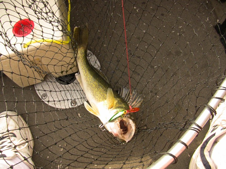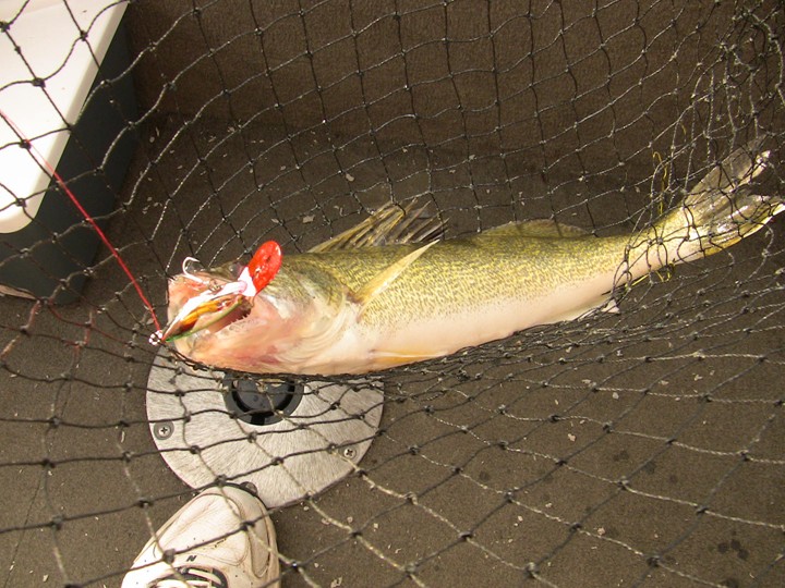 Let me explain. Brother Dave and I hit the bay this morning. Calm winds on shore, 3 foot rollers coming in off Huron, with the usual chop in-between on the bay. Headed to a spot just South of the end of the crib. Started in 13FOW. I was going to run all 1/4 tots with 1/4 crawler kicker hooked on the front. Dave was going all meat, bouncers and blades. My first rod out was the ever popular (and what I call) Green Pirate. Silver/Green Scale/Red Bill. I sent it back 50 feet. Had just all 3 out and Green P gets a hit. Nice 19 incher. 20 minutes later a 21 incher same rod. 20 minutes later 5 pound smallie, same rod. Long story short 9 walleyes 6 keepers all on my same rod. Dave has nothing and is pissed. Oh, he has changed over to cranks by now, but still nothing. 1 hour gose by and no more fish. It is now 11:00am and the bite (in my opinion) is over on the crib. Even though I'm beat up slightly from the waves and the work after my long absense from fishing, Dave will not go in till he gets something. We finally go in at 12:32pm when he catches a 12 incher on a 1/4 ounce tot. Now my leg/knee is killing me. Not hurt but sore. I kept my 5 and gave Dave 1 just so he'd have a mess to clean up.