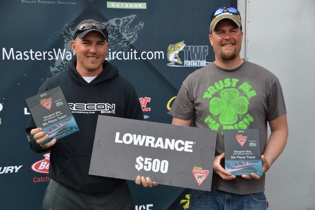 Location: Rhinelander | Cameron Lewis and Scott Rohloff brought in another huge bag today to take the win at the 2015 MWC Sturgeon Bay Event. Jerrad Kalmerton and Brett Koenig had a big enough bag to stay in second place. Scott Aydelotte and Troy Loeckle moved up into third place. Todays big fish goes to Buck Gehm and Louie Apitz with a 10.05 lber. Day two images !
