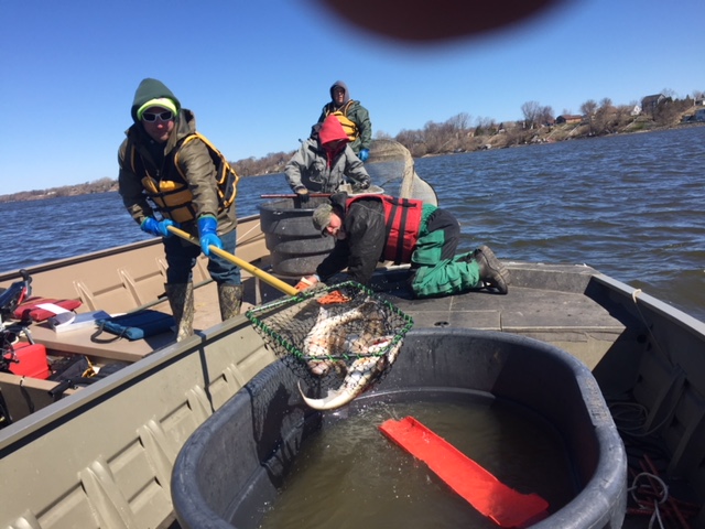 The Sauger project on Winnebago has gone well so far but once again we have not caught nearly enough females. We had about 500,000 eggs the other day and I am working on getting updated numbers. A lot of Perch this year and quite a few Lake spawning Walleyes. The Sauger we are catching in the nets are older fish from when we last ran the hatchery which is not good!