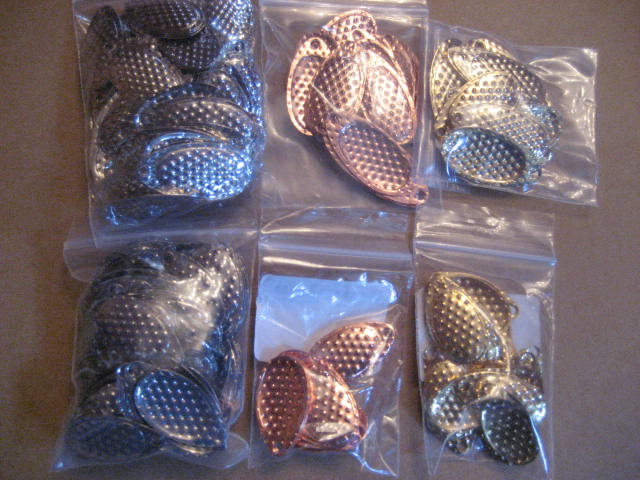 C. 40 thick teardrop spoons- all size c-2 (1.75" long)--5 org, 5 blk, 5white, 5 pink, 10 nickle, 10 chart.