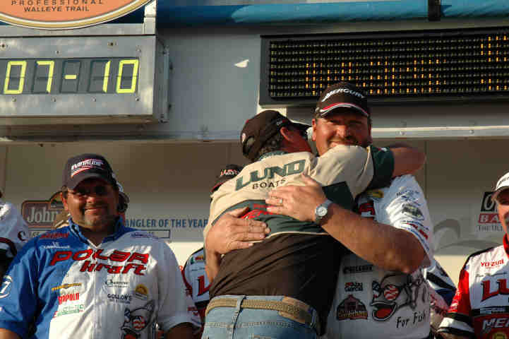 Location: Rhinelander | THIS was a contest. I spoke with Mr. Gofron and Mr. Martin this morning (watch for a WalleyeFIRST Radio interview to be posted today) and the contest between close friends Brumbaugh, Martin, and Gofron was as friendly, yet as intense as one could ask. Mark Martin said, " I have had a great year, If I don't make it for Angler of the Year, it's OK, because either Mark or Mike have the best shot, and they are both close friends." Only about three points made the difference, and it was clear onstage just how much respect the anglers in contention hold for each other.
