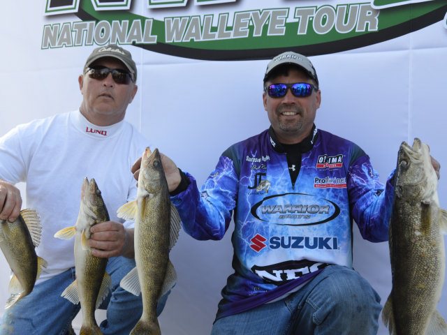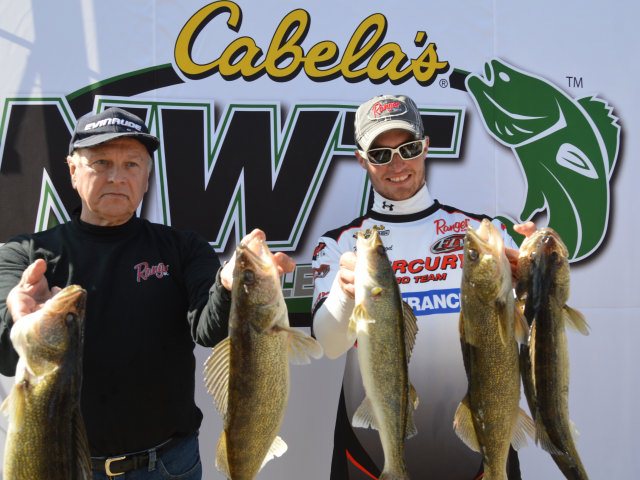 Location: Rhinelander | Pat Byle leads with a commanding weight of 23.76# after the day one weigh in at the Cabelas National Walleye Tour was completed. The bite was indeed tough, with only few limits crossing the stage and the majority of the anglers weighing in netting one or two walleyes. According to reports, the water warmed fast and many of the fish are already in the marshes spawning. In second is John Swanstrom weighing in at 18.81. Third was nailed down by Maury Schmerbach with 17.96, fourth is Korey Sprengel with 16.69. Fifth place is held by Brett King at 15.19. Dewey Stewart is in 6th, Robert Blosser in seventh, Joe Whitten eighth, Don Marks in ninth at 11.48, and Jake Lapine rounds out the top ten.is Attachments ---------------- DSC_0026.jpg (63KB - 152 downloads) DSC_0041.jpg (70KB - 157 downloads) DSC_0007.jpg (65KB - 153 downloads) DSC_0085.jpg (58KB - 157 downloads) DSC_0126.jpg (57KB - 154 downloads) DSC_0133.jpg (68KB - 148 downloads) DSC_0155.jpg (59KB - 150 downloads) DSC_0180.jpg (65KB - 157 downloads) DSC_0172.jpg (39KB - 161 downloads) | ||