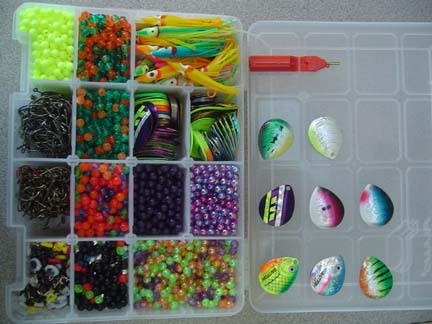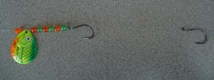 Member Posts: 885 | Al right Jay..... here we go... In my experience... #5 Colorado Blades (Northland Tackle is a great choice) run anywhere from 1.0-1.5 mph and anywhere from using an 1/8 oz inline weight and runnning 25 feet back to using a 1 oz weight and running 65 back. I will use a bottom bouncer on a sunny flat calm day during the mid afternoon and crawl with a rod with fireline in my hand. I've had 23 inch Walleyes hit a harness so light you would swear they were Perch. The key for me is to stager 6 lines and figure out where the fish are. If you are catching too many Whitebass, go lower, if you're catching Sheephead and catfish... you're in the zone. Weather does not seem to mater, water temp does as does wind. I always start in the top 7 feet of the water column regardless of the weather and work my way up or down. My first choice is a Crank bait, and if I can't seem to get them to go, I'll switch over to harnesses. I attached a pick of my fav harness for bago and a few other colors I use. Purple Skeeter Attachments ---------------- DSC00300.JPG (49KB - 124 downloads) DSC00305.JPG (26KB - 131 downloads) | ||