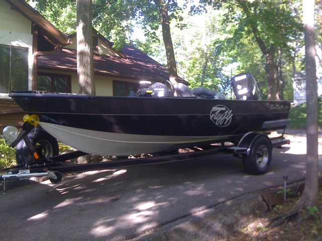 Member Posts: 650 | as he said, remove the canister and you have access under the bow... You should also find red and black power under there for your sonar... I just cut a little notch where the canister goes and ran the wires through there... I used a removable minn kota mount on the front and installing the trolling motor was much easier! Trolling motor can be removed now in seconds without unbolting anything... locks too... As far as the running of the boat... if the mounting plate does not protrude past the running surface of the boat, your OK LEAVE IT ON... I really don't think a tranducer could screw up a boats running much, besides, you may have some adjustment on the screws to raise it a bit... the pulling to the right sounds like propeller torque... get a stailness on there and that should help... all boats have that to a degree... as far as listing to the left... Oil tank and battery over on that side but should be cancelled out by the console and driver... this too could be explained by prop torque... most boats have this to a degree... my last boat screwed to the left till I hit 60.... this boat will run different when you get 2 deep cycle batteries and the trolling motor installed... with you running it "light" may be magnifying the problem... I have yet to meet anybody who needed to adjust the trim tab... MY BOAT DOESN"T EVEN HAVE ONE... (1760 opti 150) just looked out the window... you need to get the proper stainless prop that you paid for on this thing and go with it... guys here should get the right prop picked out for you... that aluminum is now your spare... I bought my tuffy last spring and rigged it here myself in NY... any questions, drop me a PM... | ||