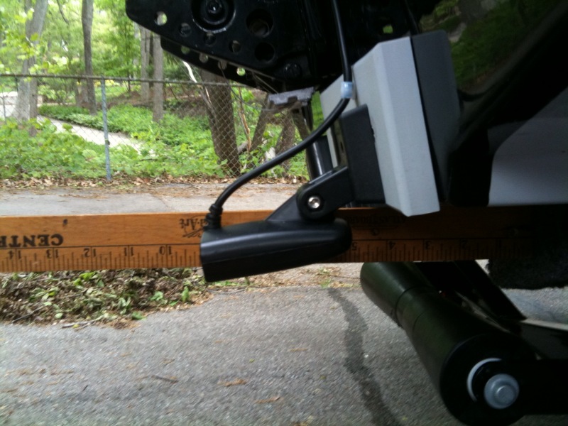 Member Posts: 650 | looks like the mounting plate is bumping into the motor bracket, picture is dark... nice boat, stainless should have that puppy moving good... That mounting plate should be easy to cut down on a table saw... check your hummingbird manual for install details but I'm guessing that transducer need to be even with the bottom of the boat with that line that runs halfway ailong the transducer... please check your manual first... more pics of your new tuffy. please... | ||