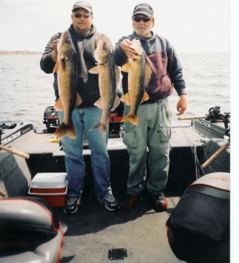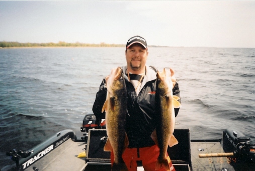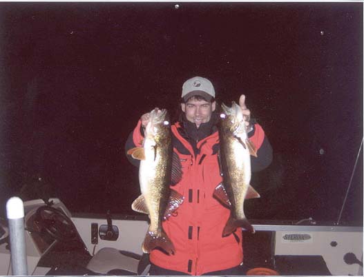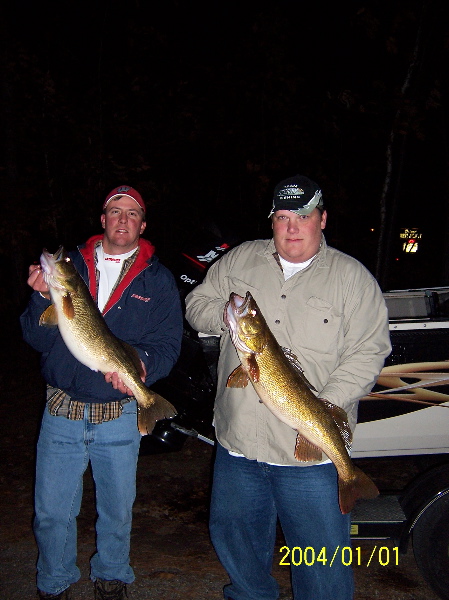 Member Posts: 39 | Here are two pics from my trip last week. The first shows my personal best walleye at 14# (32") and the other shows that Sunshine doesn't whup me in the commitment department. Attachments ---------------- Skell_14lb_02.jpg (114KB - 76 downloads) Extreme_Fishing_02.jpg (119KB - 82 downloads) | ||