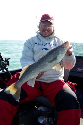 Member Posts: 265 Location: Combined Locks, WI | Earlier this spring pre fishing for the RCL league event on Green Bay myself and two friends boated 7 fish in about 20 minutes ranging from 27" to 31". We caught close to 25 fish that day and the smallest was 25". I am not kidding when I say the one we lost was probably 34" and went close to 15 pounds. All three of us saw it and we all agreed that it was the biggest walleye any of us had ever seen. My one friends Dad is a Taxidermist and he said he never saw one bigger in his Dads shop. This fish snagged up twice on the weeds and rocks on bottom but we still got it up close enough to get a look. Our jaws hit the floor. All of those fish came on harnesses except for one. My personal best this year was a 30" and a 31.75" that won the Gannett Midwest Newspapers Master Angler Standings in the Catch and Release division. The 30" held third place for a long time. The picture of the 31.75 is the same fish picture in my avatar image. Again these were harness fish. Jon Piette Attachments ---------------- scan30.jpg (30KB - 84 downloads) scan31.jpg (37KB - 75 downloads) | ||