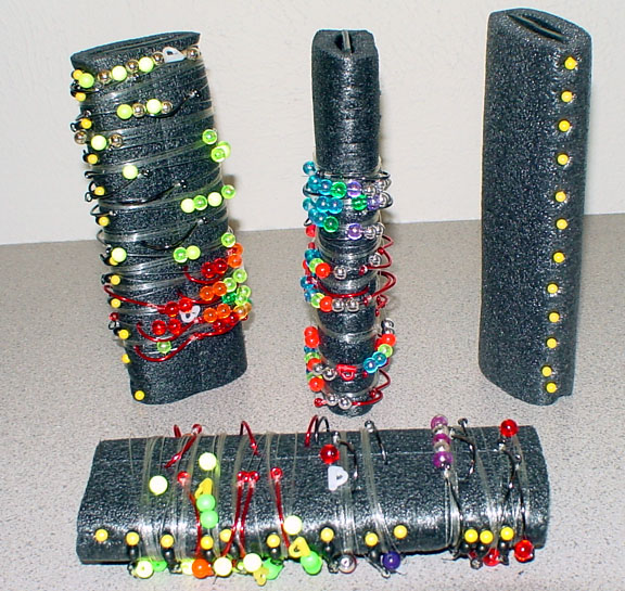 Member Posts: 219 | I also use the B&b boxes. I cut a 1/8" deep slot all the way around the noodle. (Just spin it on the table saw) I space them out 5/8". Keeps the harnesses more neat and organized for me. Attachments ---------------- noodles 002.JPG (98KB - 382 downloads) | ||
