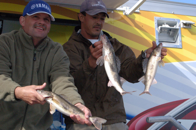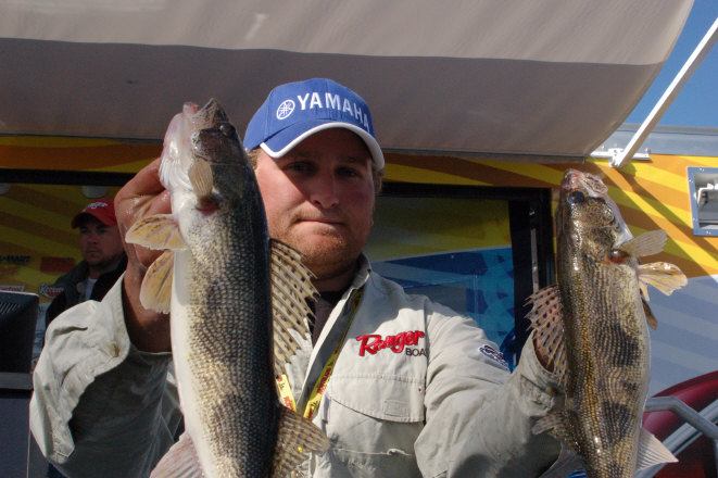 Location: Rhinelander | The bite today was indeed tougher under cold front conditions and big winds, but there were fish caught. The weather tomorrow looks a bit better, after a very cold start tomorrow morning in the mid thirties. Winds tomorrow are going to be lighter out of the NE at about 7. Bill Shimota, Dan Krukow, and Don marx weighed three fish each to hold down the top three spots. Jonathan Shoemaker weighed two to drop the fourth, Eric Olson weighed one to hold fifth, Dusty Minke weighed one to take sixth into the final day, Lamarr Van Dame took a consistent three fish to hold seventh, Paul Fallaw took a two pounder to hold down eighth, Tim Fields took 3 today to move into ninth, and Chad Wertepny rounds out the final field holding tenth. Watch for a morning report and interviews tomorrow after 8 MA, and join us for the live Audio and Interactive Leaderboard at 4 PM from the Moline Super Wal Mart parking lot! Attachments ---------------- DSC_0035.JPG (82KB - 137 downloads) DSC_0028.JPG (81KB - 137 downloads) DSC_0031.JPG (59KB - 154 downloads) DSC_0044.JPG (71KB - 152 downloads) DSC_0078.JPG (71KB - 143 downloads) DSC_0089.JPG (74KB - 144 downloads) DSC_0096.JPG (91KB - 152 downloads) DSC_0063.JPG (78KB - 138 downloads) DSC_0047.JPG (87KB - 155 downloads) | ||