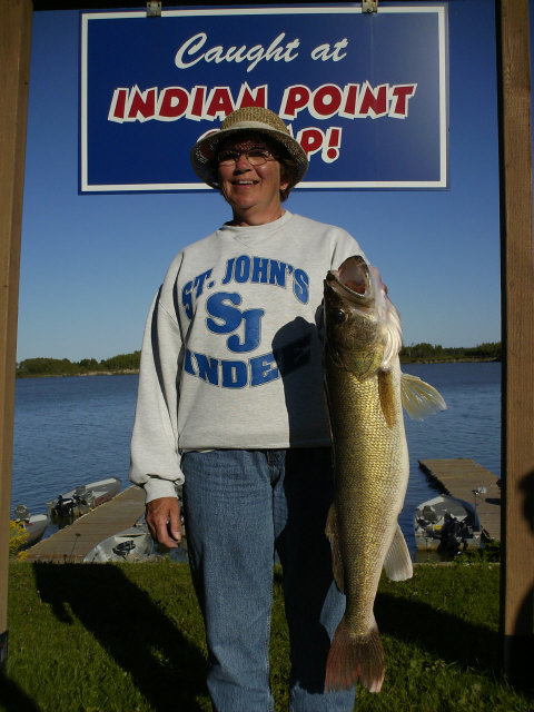 Linda McKee and Ruth Crawford caught these 11 lb and 11 lb 13 oz walleyes while fishing on the Wabigoon chain of lakes in August at Indian Point Camp!